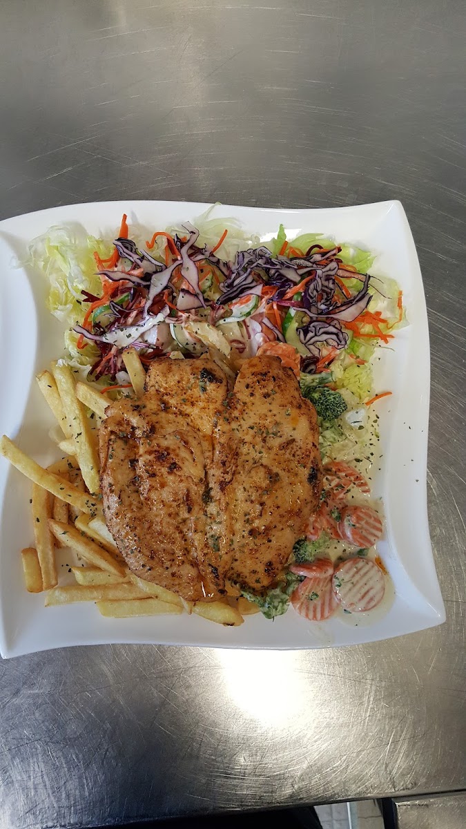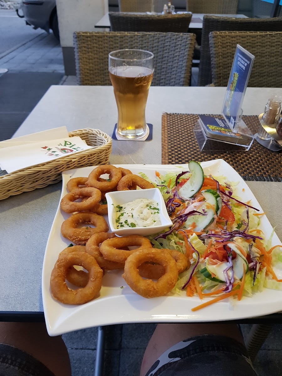 The menu at Azzuro Pizzeria is a delightful mix of flavors, showcasing dishes that cater to a variety of tastes. The Tintahal Karikák Saláta Ágyon stands out as a signature starter, featuring perfectly fried calamari rings served on a fresh salad bed that balances crunch and zest. For those seeking something hearty, the Kebap Brot offers a satisfying blend of tender meat and soft, fresh bread, making every bite a comforting indulgence. The Hünerfile is another highlight, cooked to perfection and bursting with flavor, while the Knoblauchcremesuppe delivers a creamy, garlicky warmth that feels like a hug in a bowl.